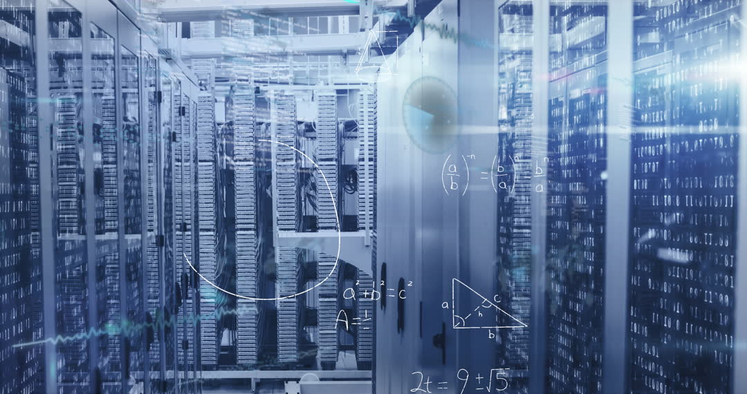 - Mathematical Equations Overlay on Modern Data Center Servers