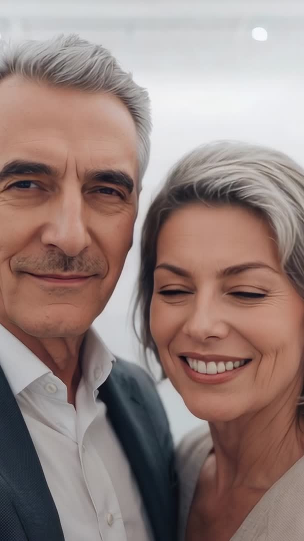 - Mature couple posing close together in vertical video, showing affection and warmth