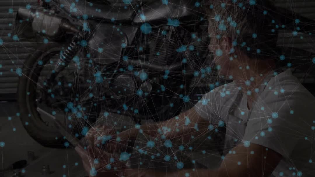 - Mechanic Diagnosing Motorcycle Engine via Digital Network Nodes