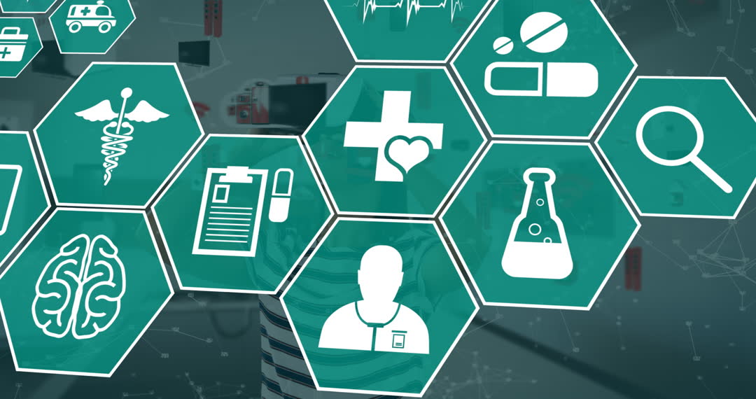 - Medical Icons Network Overlay with Green Hexagonal Frames