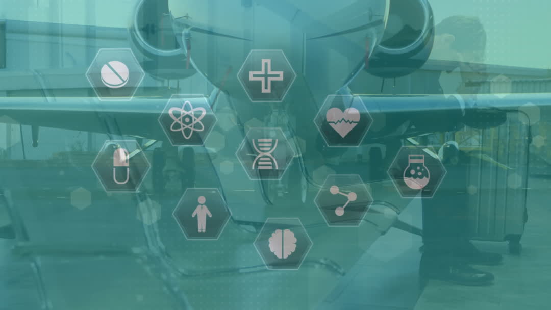 - Medical Icons Overlaid on Airport Scene with Airplane