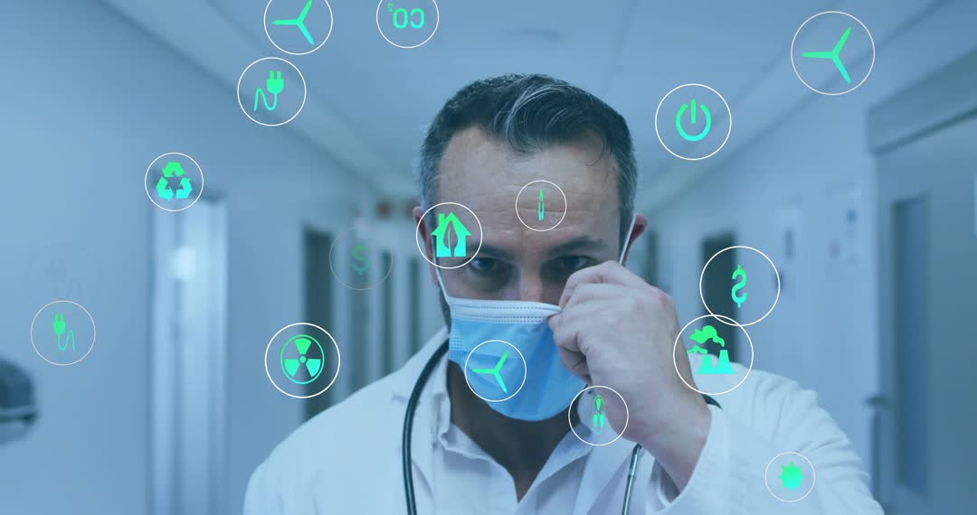 Medical Professional Adjusting Mask with Digitized Eco-Friendly Icons Video