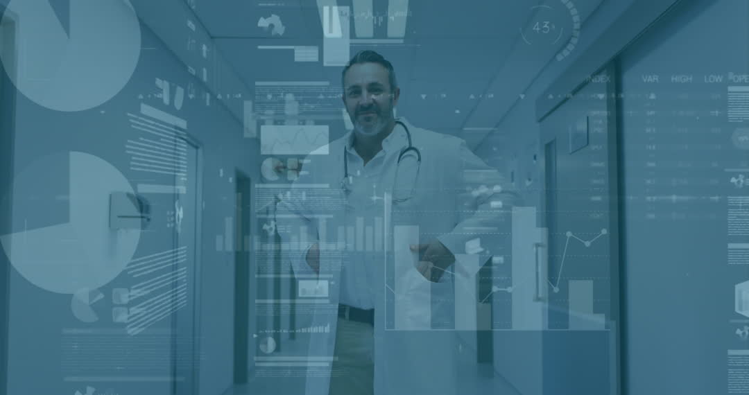 Medical Professional Analyzing Advanced Data in Digital Overlay Video