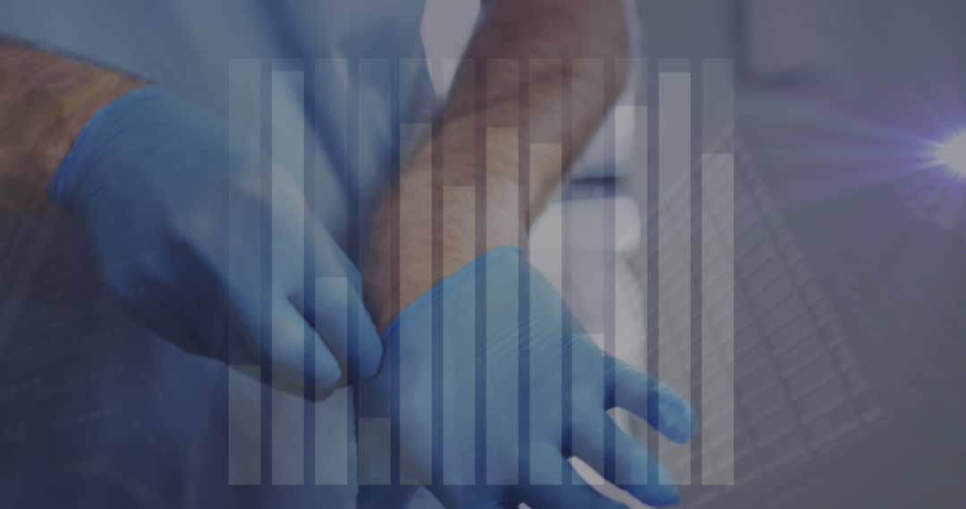 The video displays medical professional equipping gloves with data graphics overlay, symbolizing integration of technology and healthcare. Perfect for articles or presentations focused on advancements in medical technology, healthcare analytics, or the intersection of technology and health management.