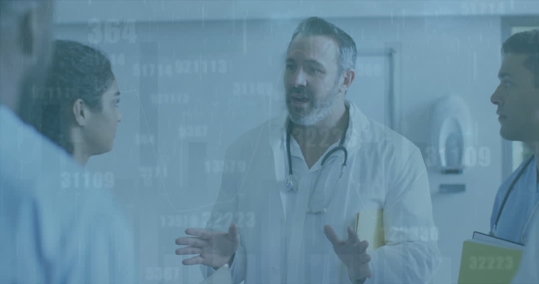 This video depicts a group of diverse doctors engaged in a discussion, overlayed with financial data, illustrating the convergence of healthcare and digital innovation. Useful for articles about modern healthcare systems, technological advancements in medicine, or financial elements in hospital management.