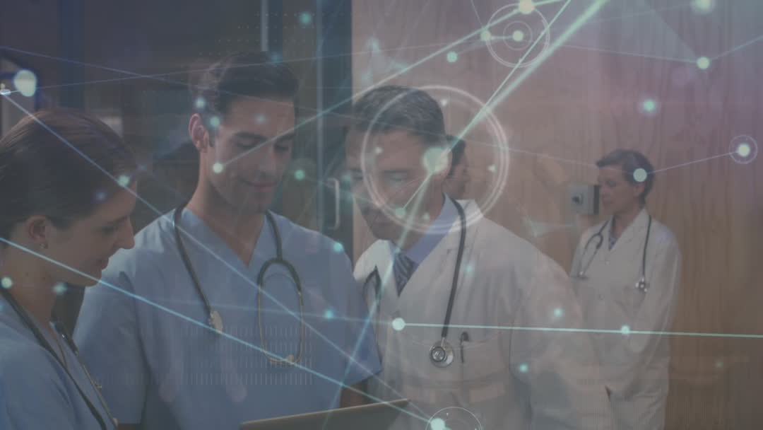 Medical Professionals Collaborating with Technology Connection Overlay Video