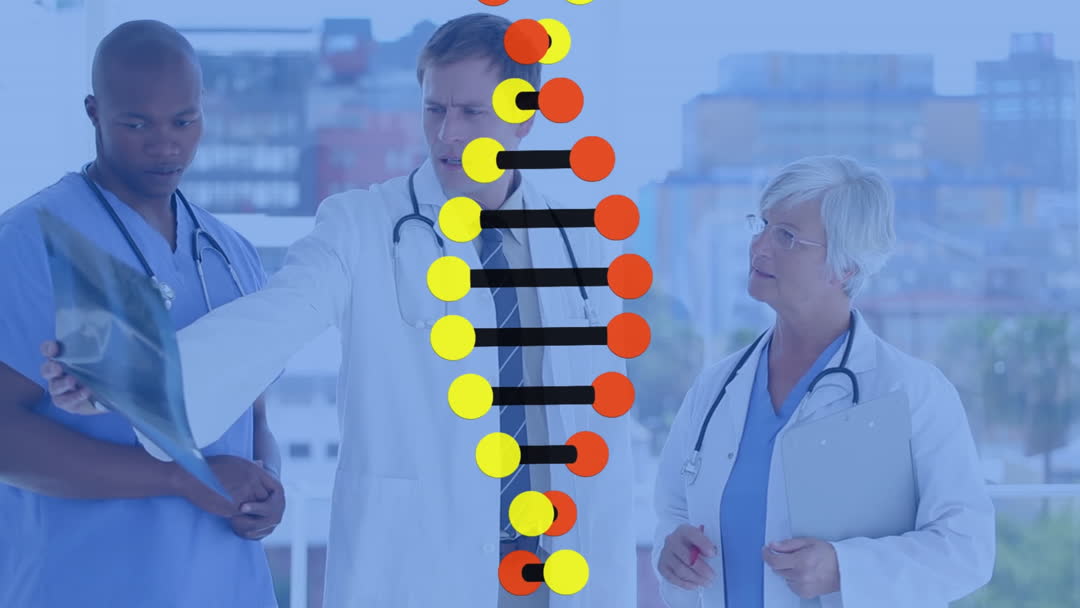 - Medical Team Analyzing X-Ray with DNA Animation Overlay