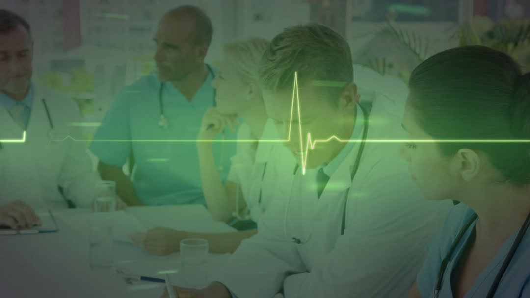 - Medical Team Meeting with Heartbeat Overlay Animation
