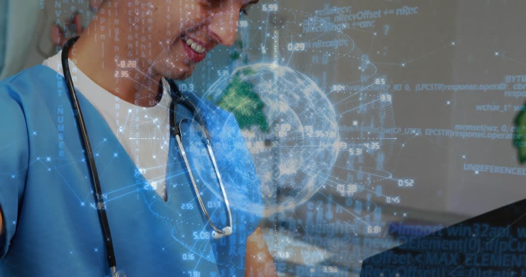 Depiction of a healthcare professional utilizing advanced digital technology for patient data management and diagnostics. Suitable for illustrating modern medical practices and innovations in publications, clinics, technology expos, or educational materials highlighting future medicine.