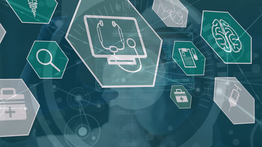 - Medical Technology Icons Overlaid on Healthcare Worker