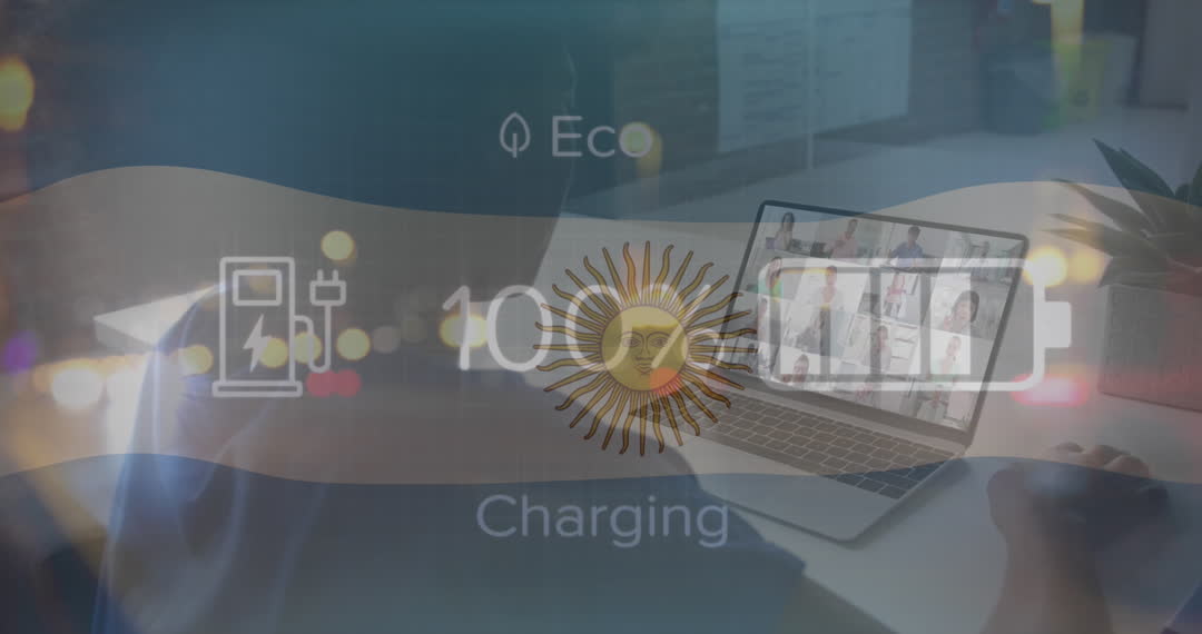 This visual blends Argentina's national pride with themes of sustainability and technology. It features an online business meeting within an interface that emphasizes global collaboration and eco-consciousness. Useful for presentations about digital innovation in South American markets or promoting environmentally responsible businesses, this concept shows connectivity and cultural unity.