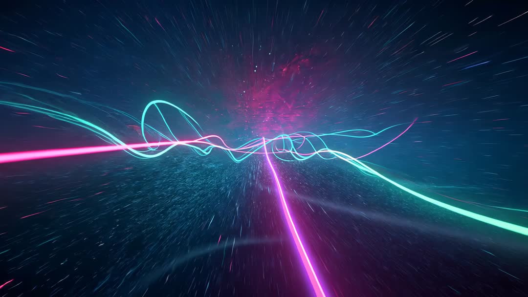 - Mesmerizing Neon Light Ribbons Propel Through Cosmic Tunnel