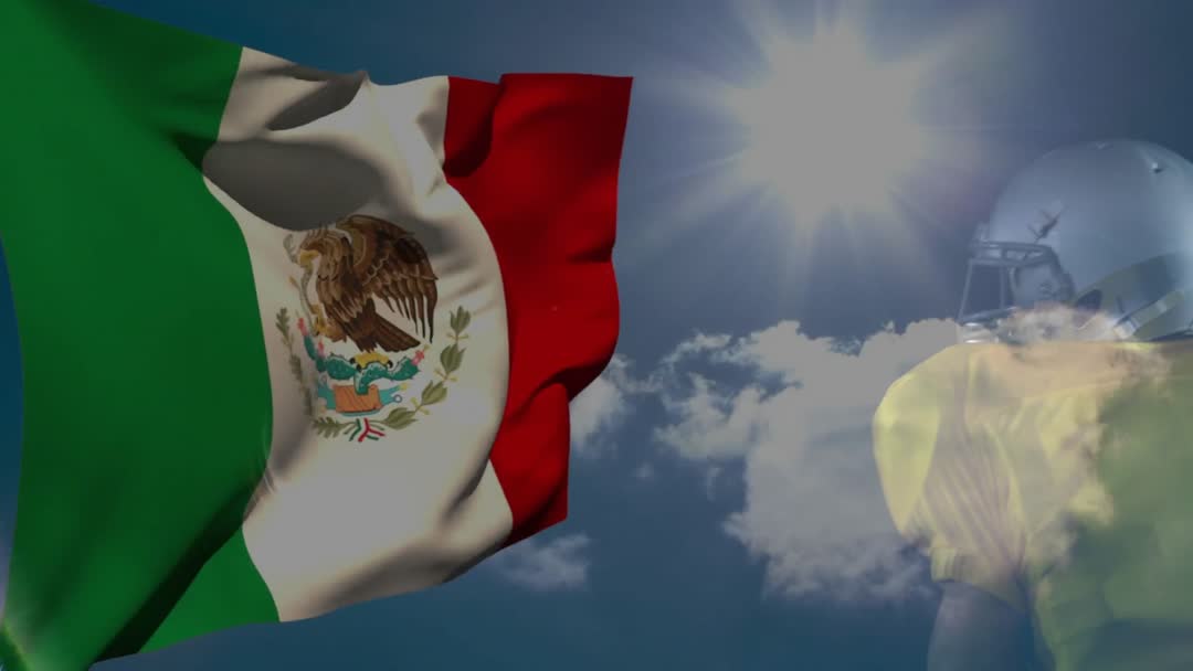 Mexican Flag Waves with Football Player Under Sunny Sky Video