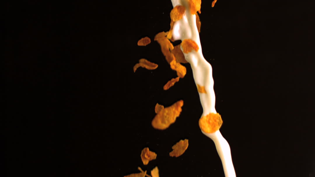 - Milk and Cereal Gorgeously Splashing Mid-Air in Slow Motion