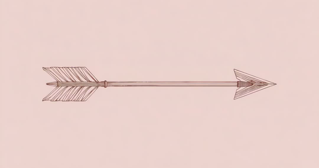 AI Generated Image. Projection of an arrow gliding smoothly across a pale pink backdrop, showcasing its intricate sketch and line art style. The focus is on the elegant fletching increasing viewer engagement through its minimalist, artful portrayal. Suitable for educational illustrations, art design inspiration, or animations emphasizing dynamic movement and simplicity in art pieces.