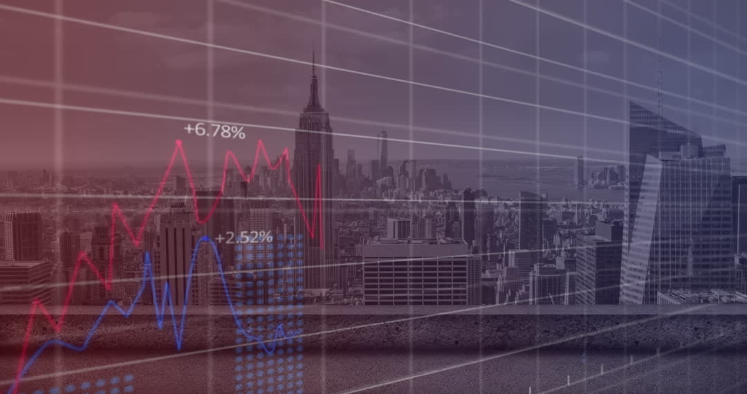 Financial data graphics overlayed on a city skyline evoke themes of innovation and analysis in urban environments. Ideal for presentations, business reports, or industry articles highlighting economic trends and urban technology.