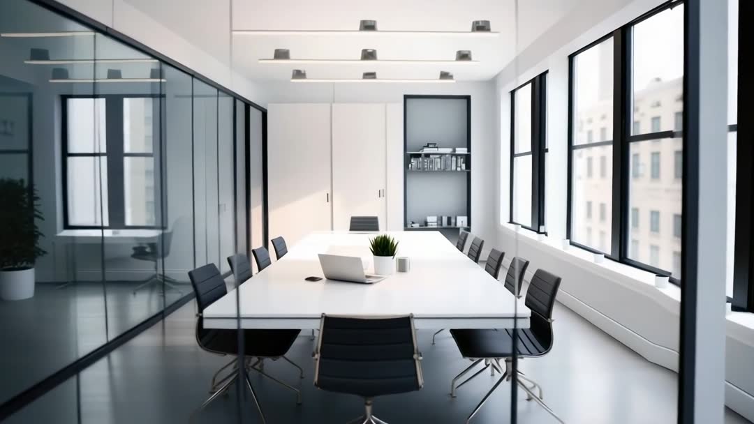 Modern Minimalist Conference Room with White Table and Black Chairs Video
