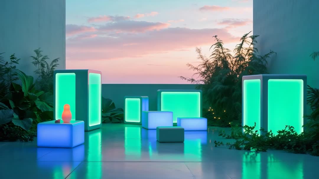 <a target="_blank" href=https://pikwizard.com/video/modern-rooftop-terrace-with-colorful-glowing-blocks-at-sunset/c2d659b471e49058f623b989a61f39ec/>PikWizard</a>
