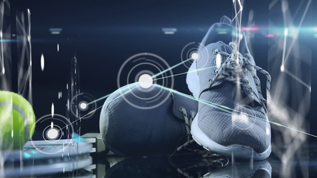 Visual representation of modern tech integration in sports, highlighting how digital transformation enhances player performance through real-time data analysis and smarter training methods. Ideal for illustrating topics on sports innovation, data-driven strategies, enhancing athleticism in tennis through smart devices, or futuristic interpretation of sporting equipment.