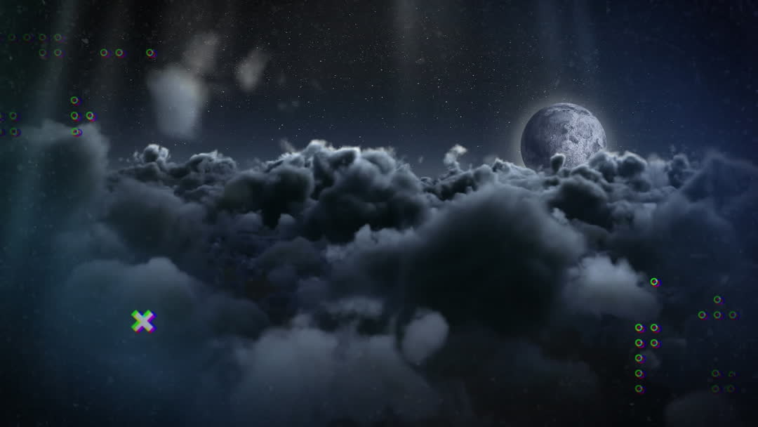 - Moody Night Sky with moving Clouds and Overlay Elements