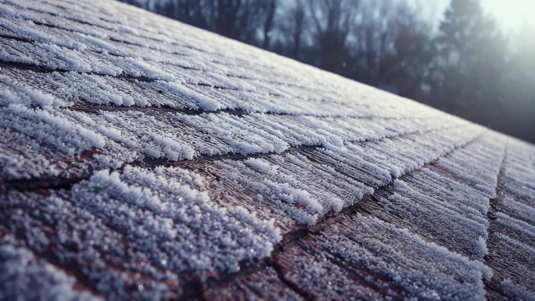 AI Generated Image. This video still beautifully captures intricate frost crystals sparkling on wooden planks bathed in early morning sunlight within a tranquil forest background. The delicate frost mixed with the golden light offers a sense of calmness and seasonal transition. Ideal for use in winter-themed marketing campaigns, nature documentaries, or promotions for photography tutorials focused on capturing natural textures and lighting.
