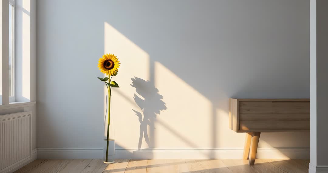 - Morning Sunlight Casting Shadows on Minimalistic Space With Sunflower