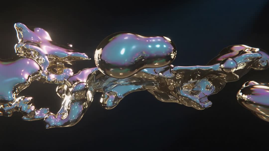 Morphing Iridescent Liquid Ribbon Bulging into Metallic Droplets - 3D Cinematic Loop Video
