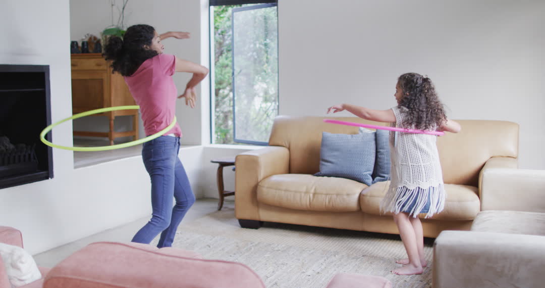 - Mother and Daughter Enjoying Indoor Hula Hooping Activities