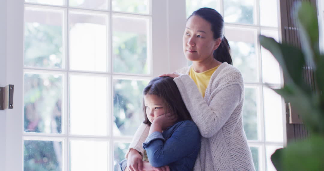 - Mother Comforting Daughter Near Window at Home
