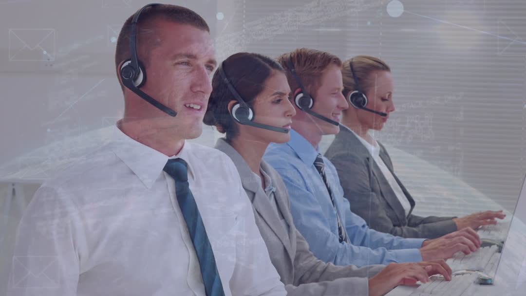 Multi-Ethnic Customer Support Team Using Headsets in Modern Office Video