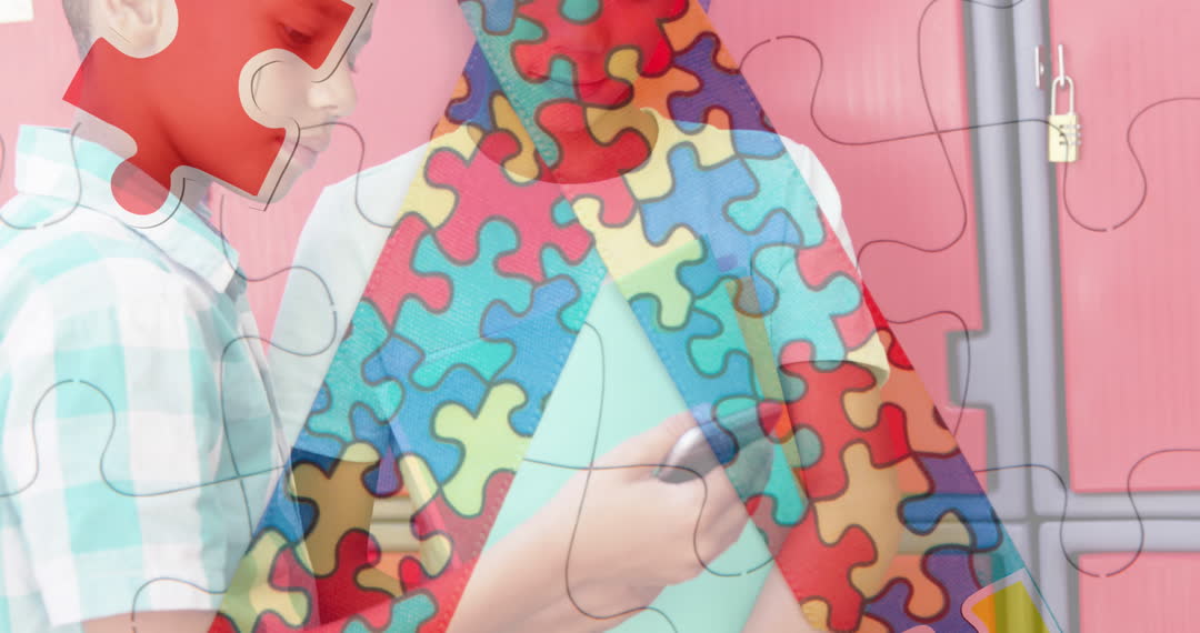 Multicolored Autism Ribbon Overlaying School Experience Video