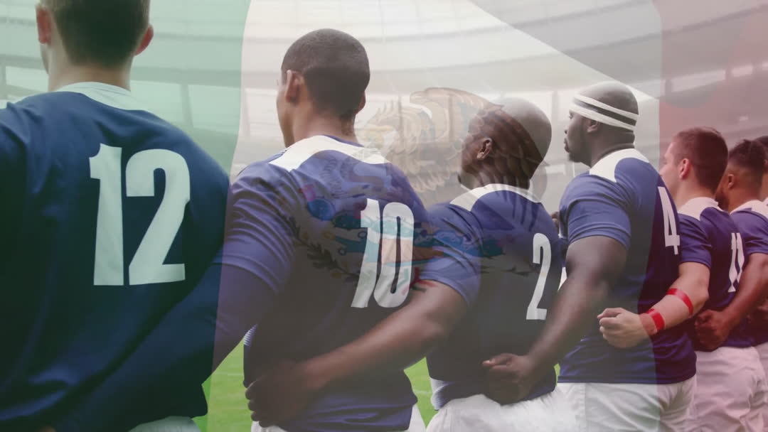 Multiracial Rugby Team Singing Anthem with Mexico Flag Overlay Video