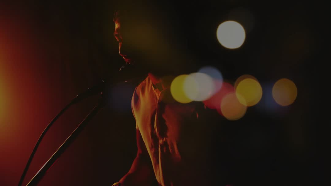 Musician Singing into Microphone during Atmospheric Live Performance Video