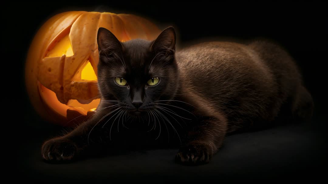 <a target="_blank" href=https://pikwizard.com/video/mysterious-black-cat-with-glowing-jack-o-lantern-halloween-scene/9001ed34a2aee603d424f81989d2704d/>PikWizard</a>
