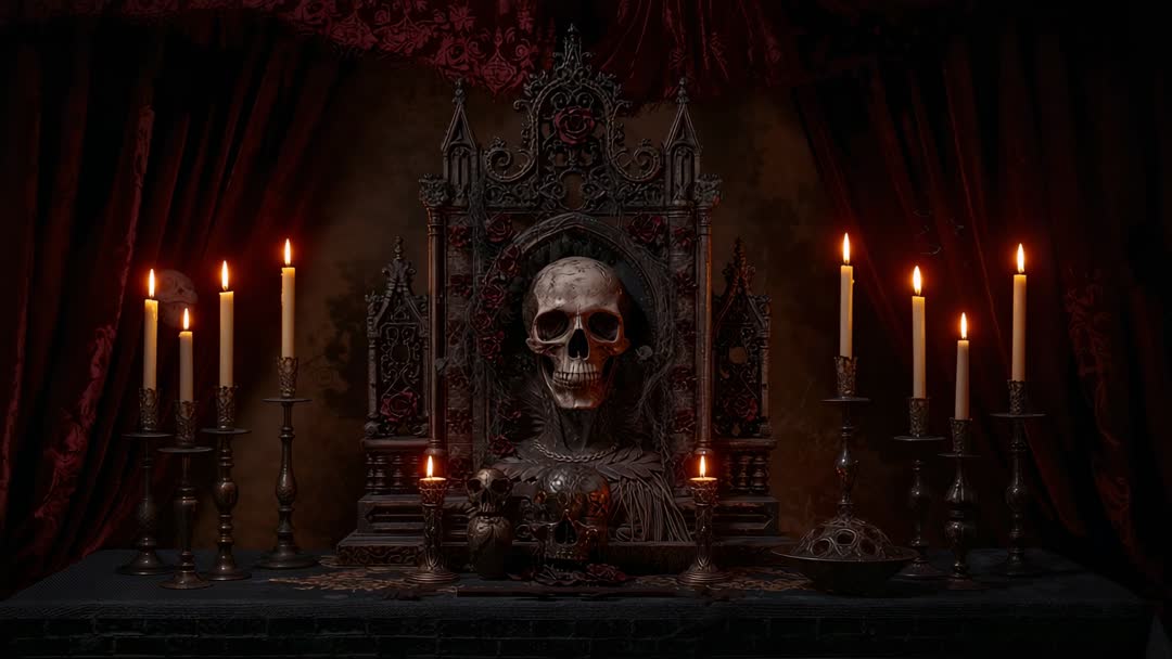 <a target="_blank" href=https://pikwizard.com/video/mysterious-gothic-crypt-altar-with-skull-and-candles/51aff6707314e5a772f15e53c99c943b/>PikWizard</a>