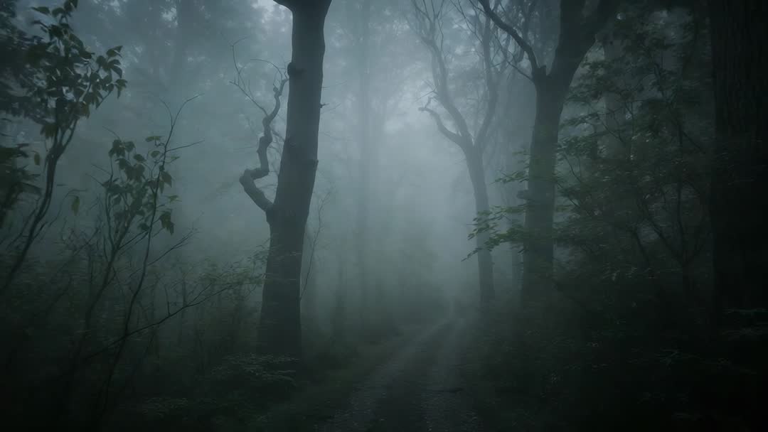 - Mystical Foggy Forest Path Drone Journey Unveiling Tranquil Nature