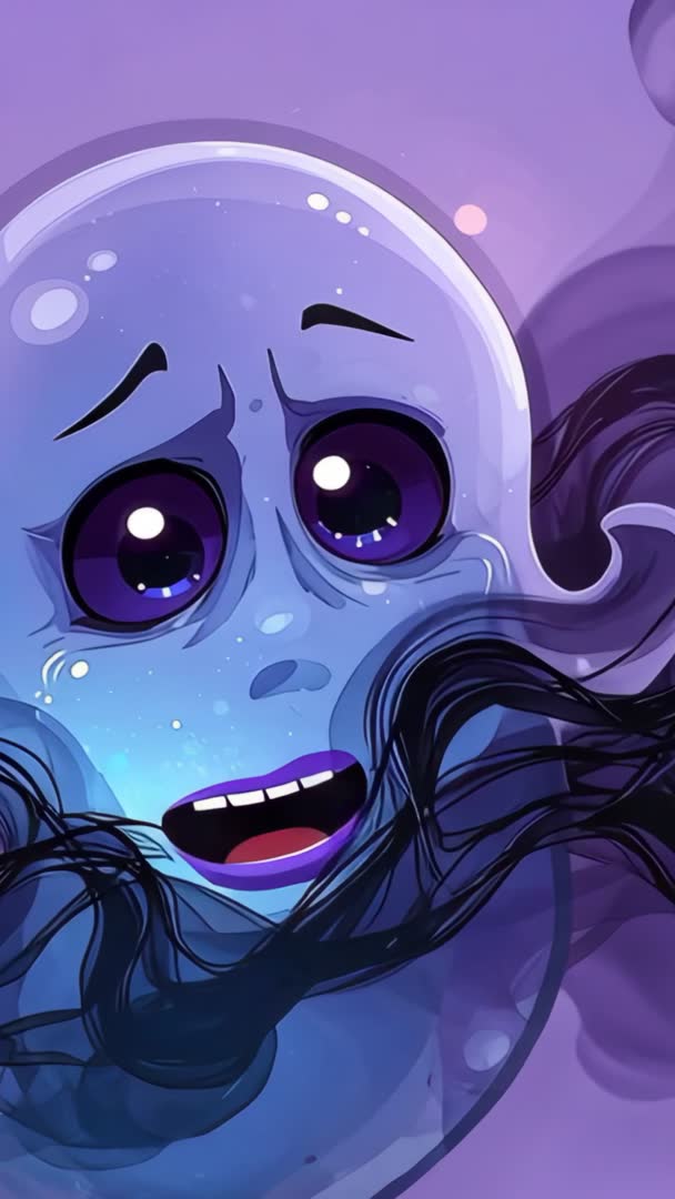 AI Generated Image. Short vertical clip showing jellyfish-like creature gliding through purple haze while waving long flowing tentacles and releasing floating bioluminescent orbs. Visual mood blending mystical tranquility and gentle suspense through soft purple and blue palette and slow fluid movement. Footage suiting mobile story backgrounds, social media reels, meditation and relaxation videos, ambient music visuals, sci-fi title sequences, game intros, app splash screens, and NFT loopable art. Clip offering loop-friendly rhythm, layered depth for parallax effects, and color grading flexibility for brand matching. Use tips: pair with ambient music, add subtle particle overlays, place logo or typography in negative space at top or bottom of vertical frame, or use as calming background for wellness apps and streaming intros.