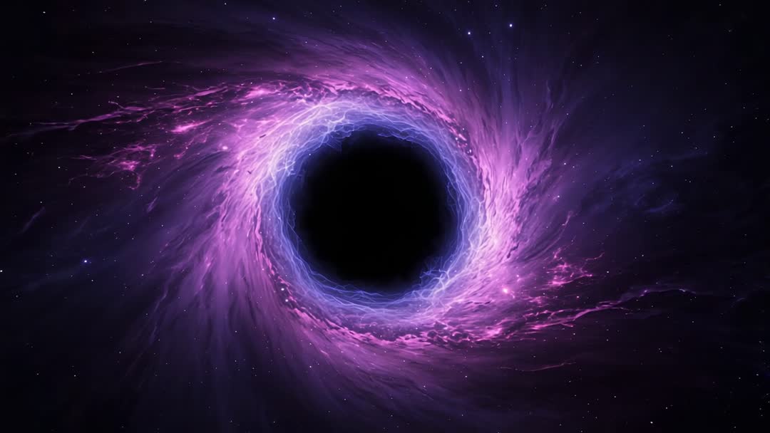 AI Generated Image. Spellbinding cosmic animation presents purple glow enveloping cosmos centered around expanding black hole. Electric-blue currents add dynamic energy, highlighting forces shaping astral landscape. Perfect for educational content on space phenomena, astrophysics presentations, or science fiction visual projects exploring inner mysteries of universe with futuristic flair.