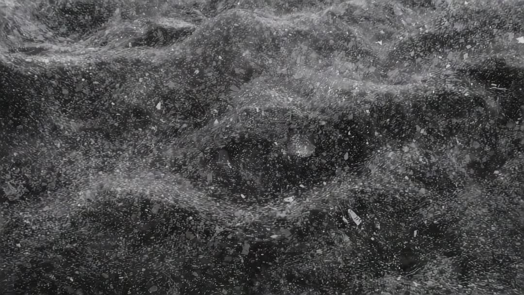 AI Generated Image. Clip showing nearshore water rippling as raindrops strike surface, forming foam and carrying small floating debris in closeup monochrome. High-contrast grayscale texture highlighting wave patterns, surface turbulence, and dynamic motion. Suitable for environmental storytelling, ocean pollution coverage, storm or weather sequences, and mood-driven editorial content. Use as loopable background for news graphics, documentary title sequences, website headers, social media reels, or music video atmospherics. Recommend adding ambient rain and wave sound design, applying subtle slow motion for dramatic emphasis, or color grading for warmer or colder tone to match project mood.