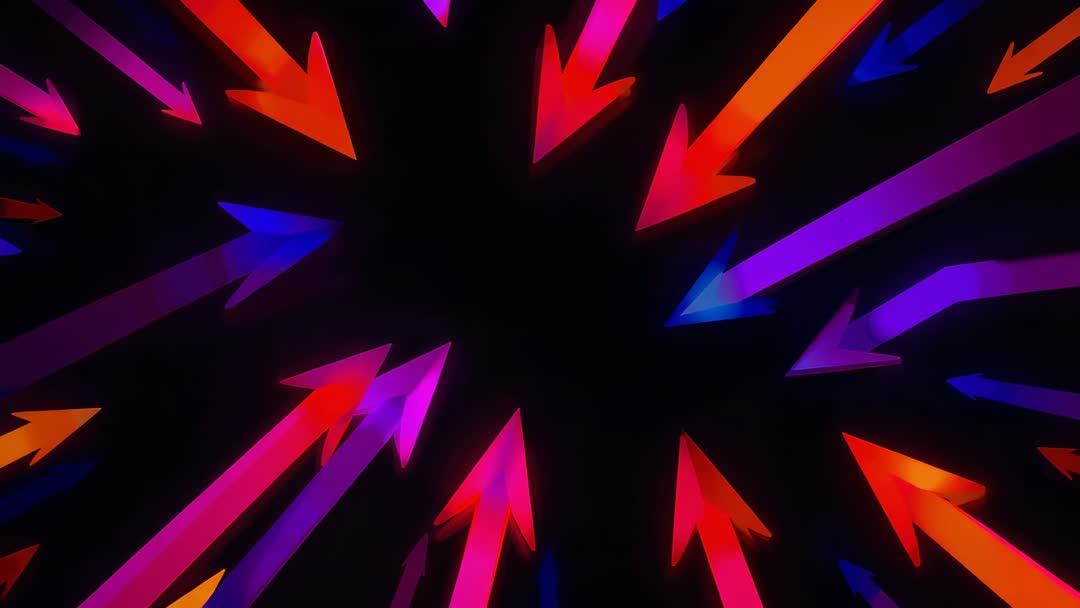AI Generated Image. Featuring neon arrows in red, pink, purple and blue converging inward around star-shaped black void, creating strong central focus and dramatic radial motion. Showing smooth pulsing glow, layered gradients and motion blur that enhance sense of speed and depth. Providing loopable clip for use as dynamic background, transition or overlay in videos and live visuals. Fitting for tech demos, app intros, electronic music promos, social media ads, conference openers and broadcast bumpers. Suggesting color and speed adjustments for brand match and tempo sync, and adding text or logo in center void for title reveals or calls to action.