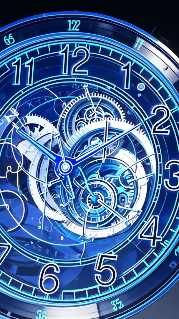 - Neon Blue Clockwork Mechanism Rotating Gears with Advancing Hands Vertical Cinematic Loop