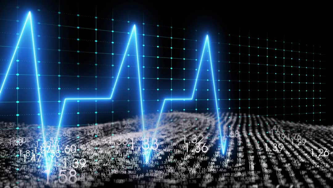 Neon-blue waveform spikes with digital numerical grid depicting a dynamic and futuristic visualization of data trends. Ideal for technology-focused presentations, educational content on data analysis, and media demonstrating modern digital landscapes. Highlights vibrancy and innovation in tech-related themes.