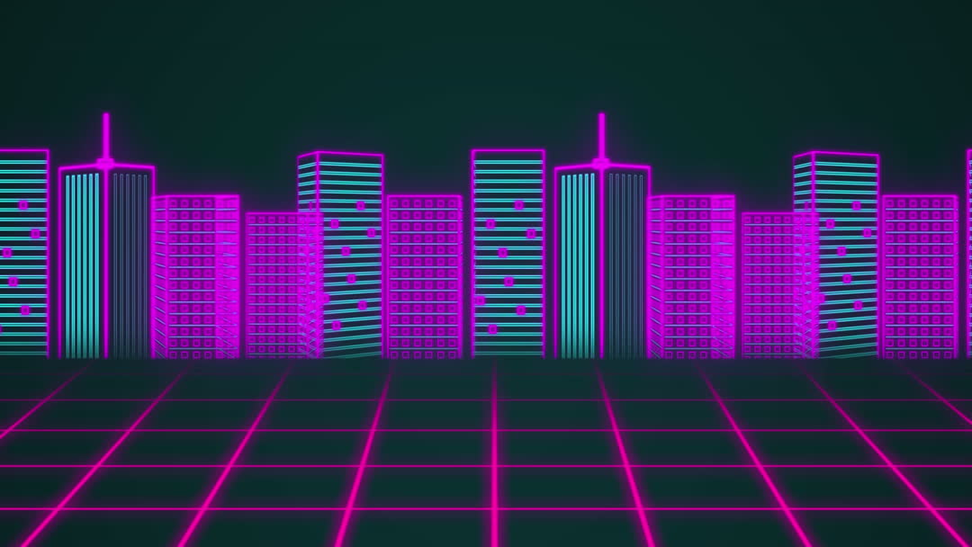 Neon Cyberpunk Cityscape with Grid Foreground Video