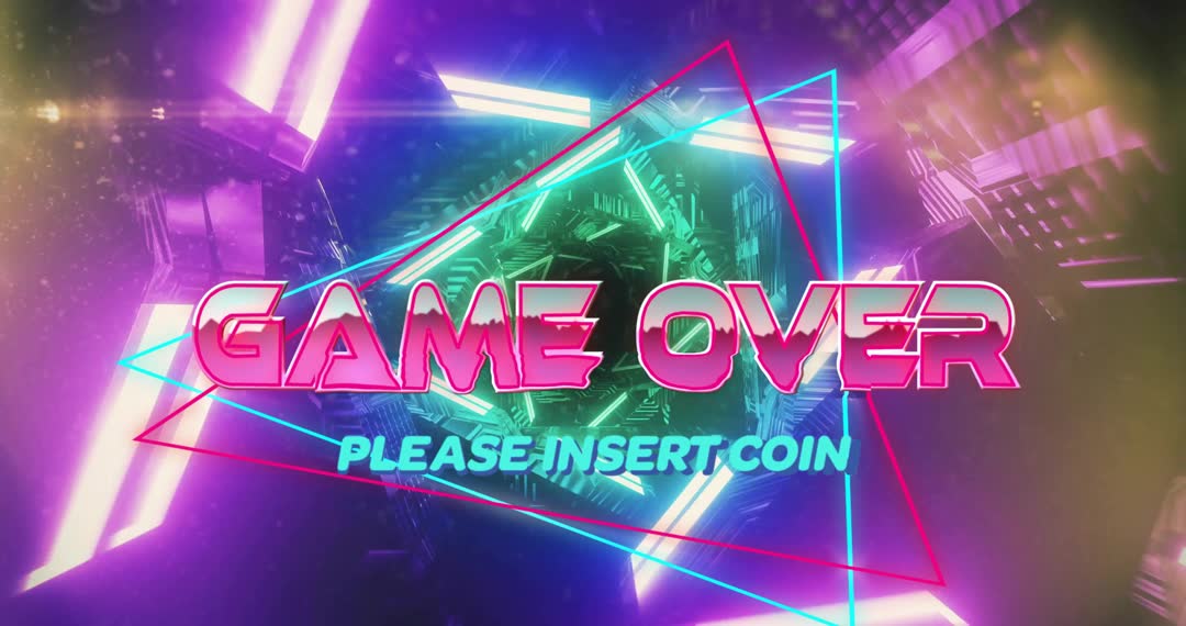 Neon Cyberpunk Game Over Screen with Futuristic 3D Tunnel Video
