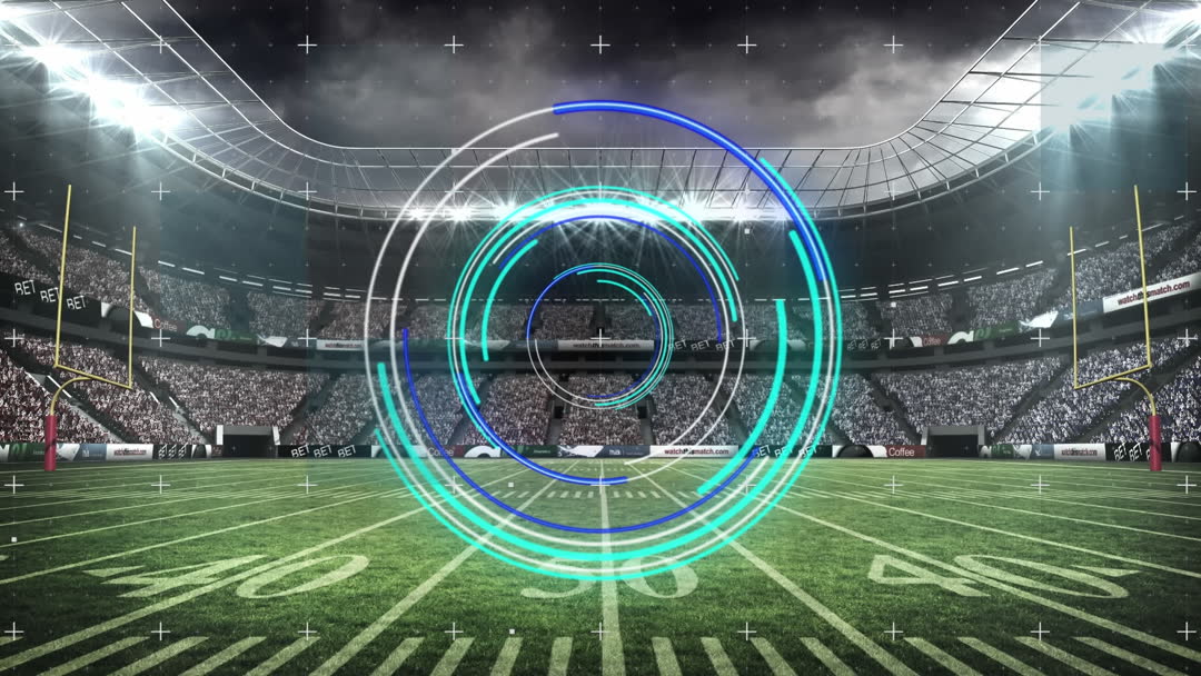 - Neon Data Scanner and Technology Overlays on Futuristic Sports Stadium