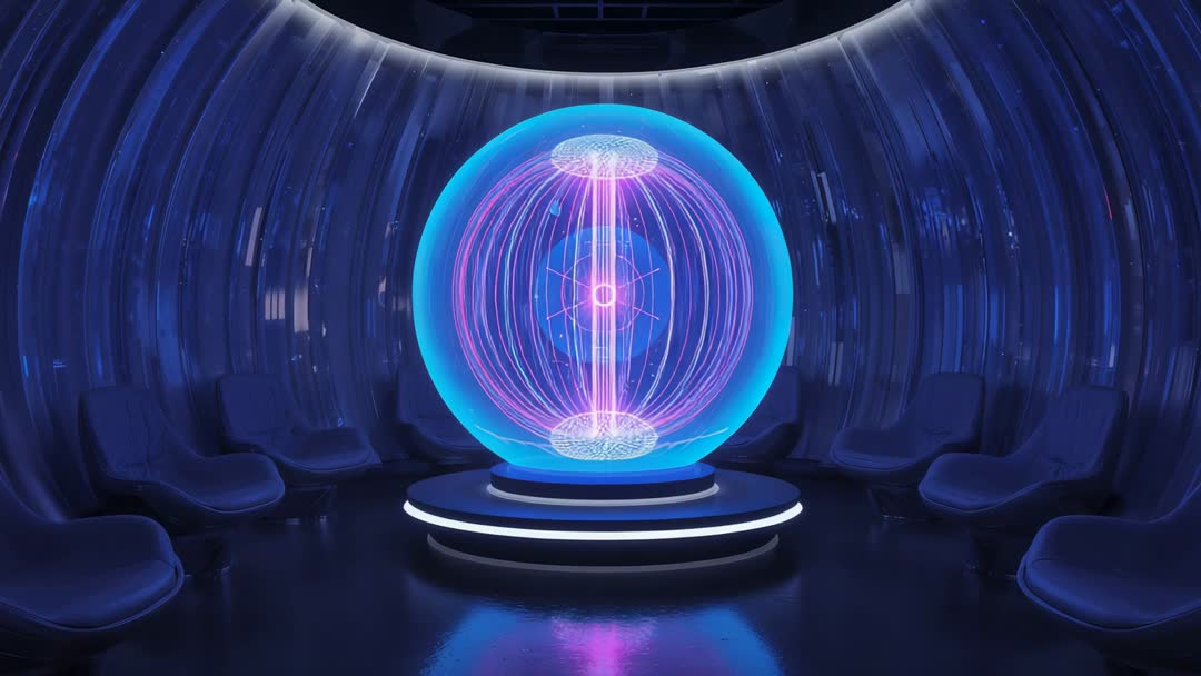 - Neon Energy Sphere Glowing in Futuristic Chamber