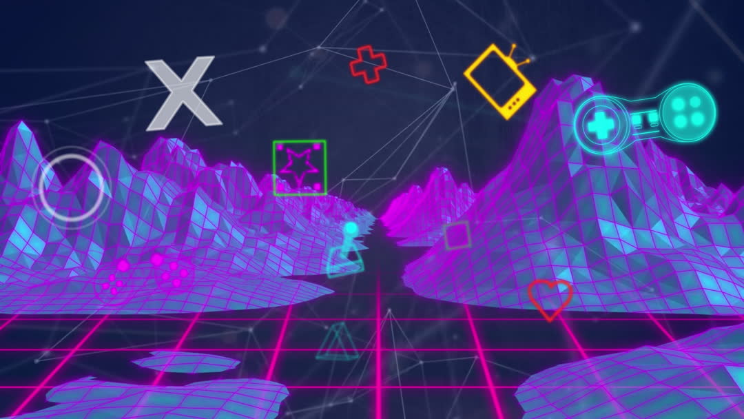 - Neon Gaming Gadgets in Metaverse Landscape Animation
