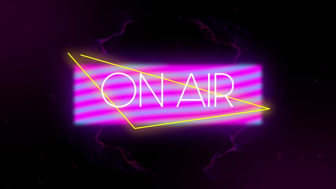 Neon glow forms vibrant 'On Air' sign with a digital lighting effect. This can be used for modern media campaigns, video game interfaces, entertainment advertising, tech videos, and broadcast promotions.