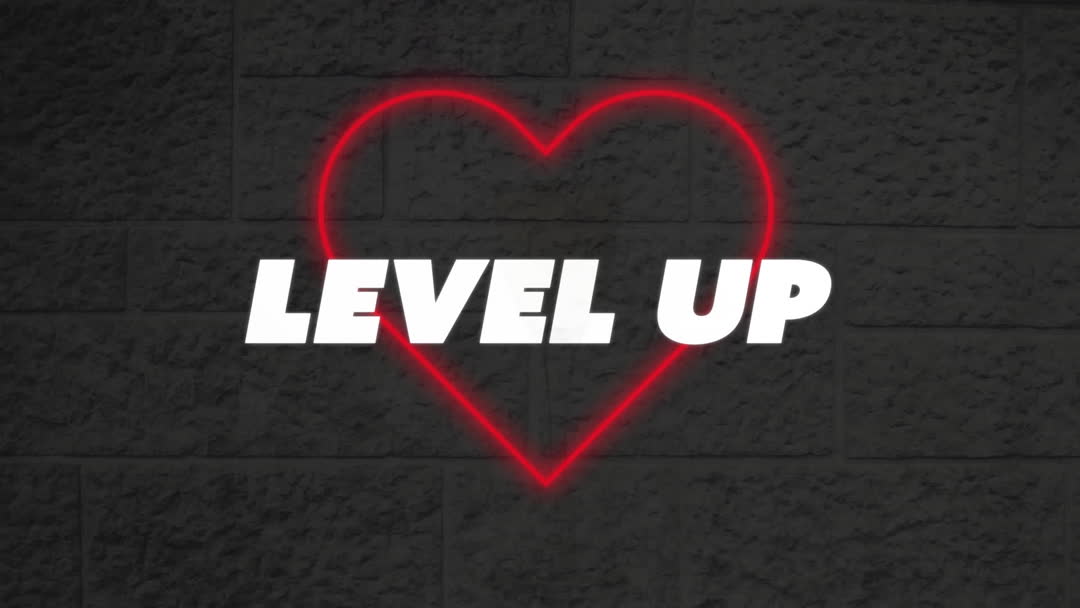 Featuring bright neon text 'Level Up' within an eye-catching red heart shape, this video can enhance tech or gaming-oriented designs. Ideal for motivational posters, social media graphics, digital ads targeting innovation and growth. Exhibits a modern, playful digital aesthetic suited for youthful, energetic audiences.
