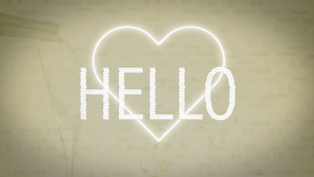 This digital animation combines a glowing 'Hello' text with a heart symbol, offering an engaging visual perfect for greeting cards, social media banners, romantic announcements, or website hero sections seeking a stylish and modern touch with a minimalist aesthetic.